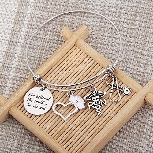 Why Choose ENSIANTH Nurse Bracelet She Believed She Could So She Did Bracelet Nurse Hat Medical RN Charm Bracelet Nurse Graduation Gift?