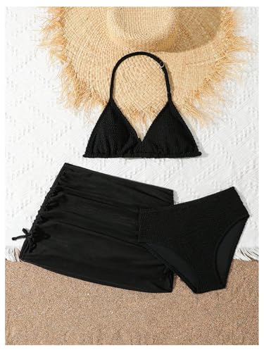 SHENHE Girl's 3 Piece Swimsuits with Cover Up Skirt Halter Triangle Bathing Suits Bikini Set