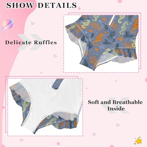 More information about ALAZA Orange Seahorse Coral Reef Blue Girls One Piece Swimsuit Long Sleeve Rash Guard Swimsuits UV 50+ Swimwear Zipper