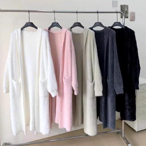 MOLERFO Long Fuzzy Cardigan Hooded velvety Cozy Trendy Oversized Open Front Mohair Sweaters Women Coquette Loungewear