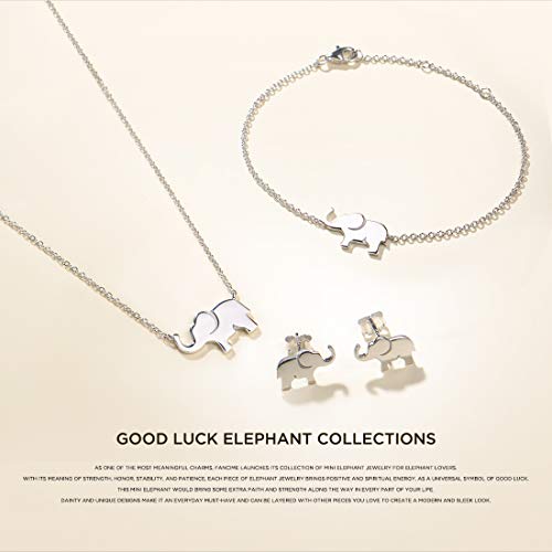 FANCIME Lucky Elephant Necklace 925 Sterling Silver High Polished Cute Mini Small Lucky Elephant Family Dainty Pendant Necklace Birthday Gifts For Women, 16" + 2" Extender