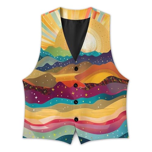 Psychedelic Landscape with Mountains Sun Novelty Men's Suit Vest Casual Formal Dress Vests Business Waistcoat