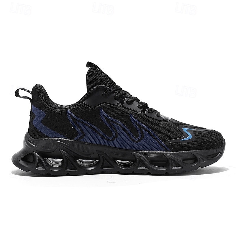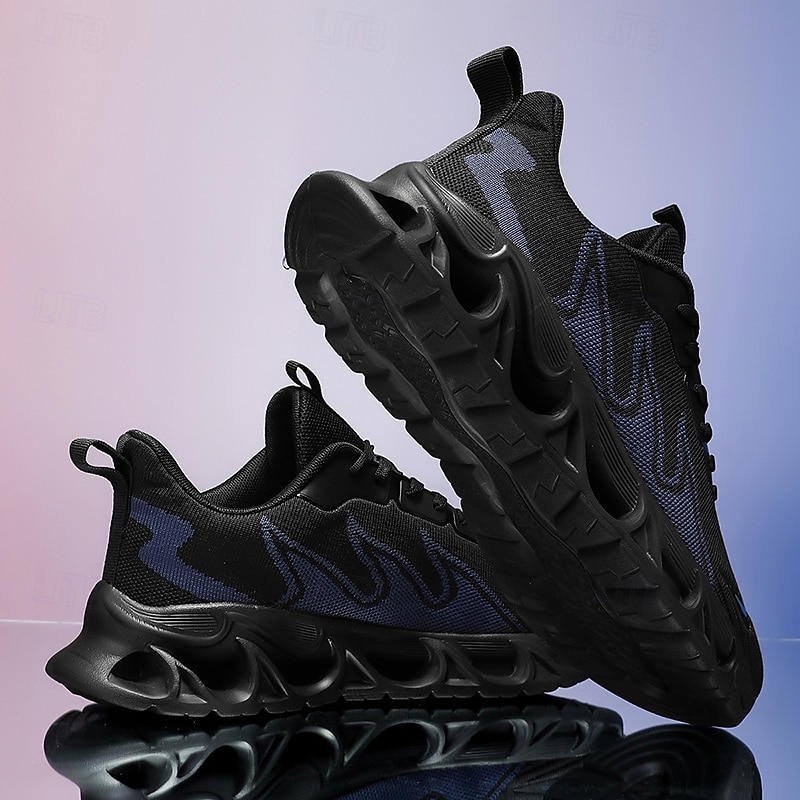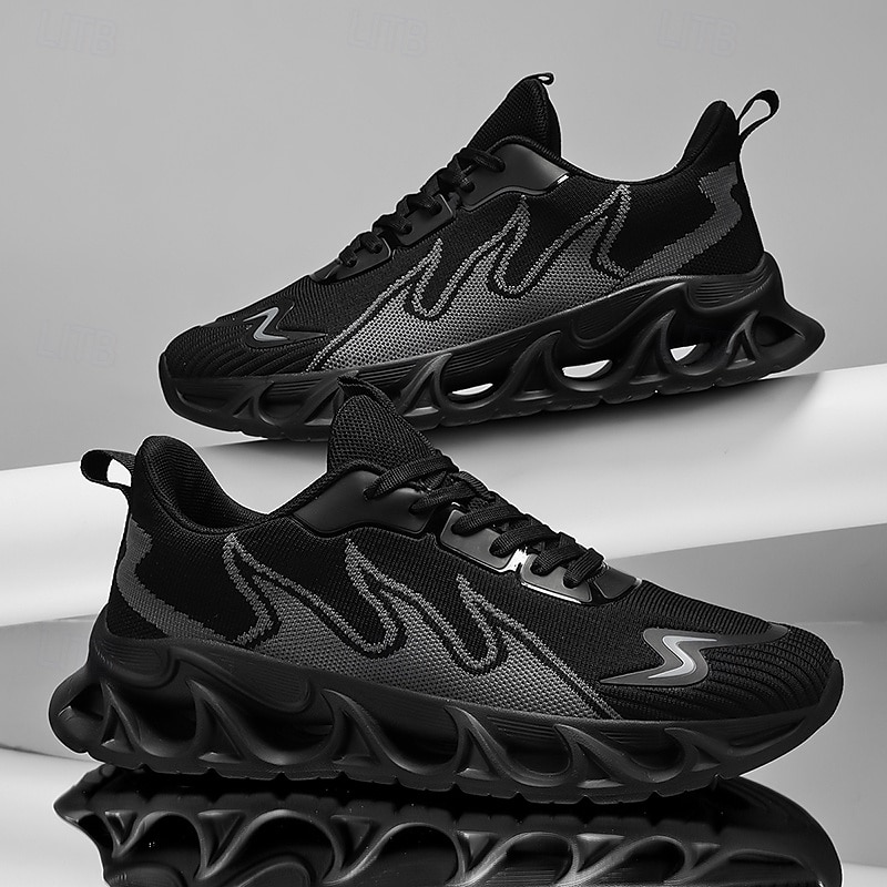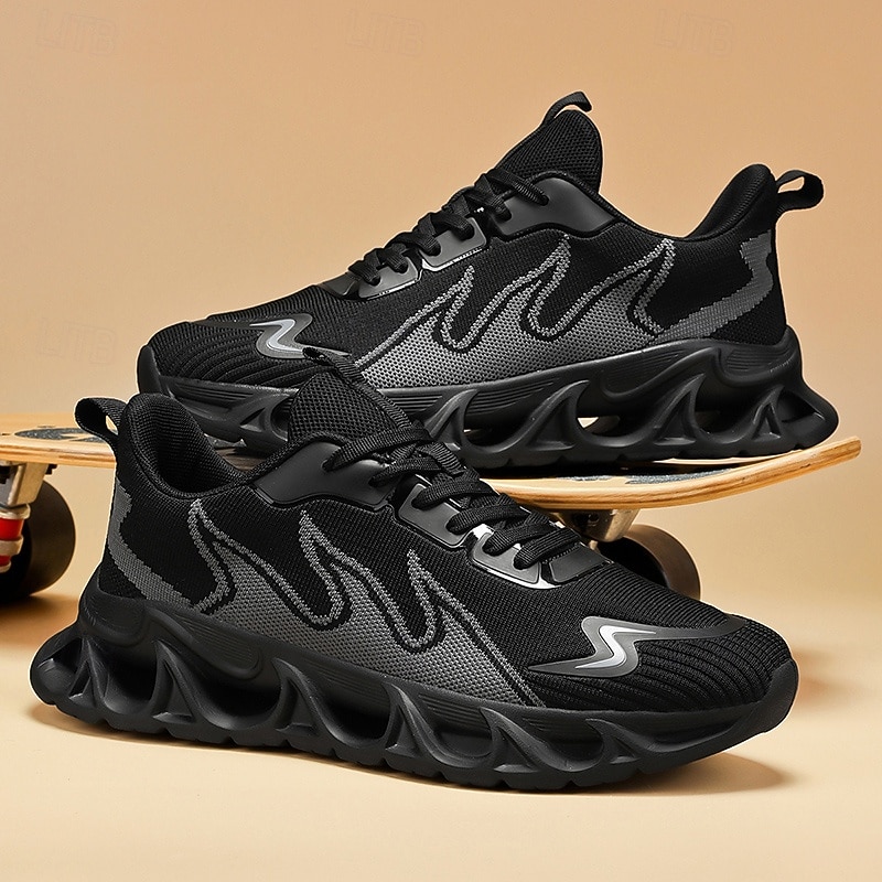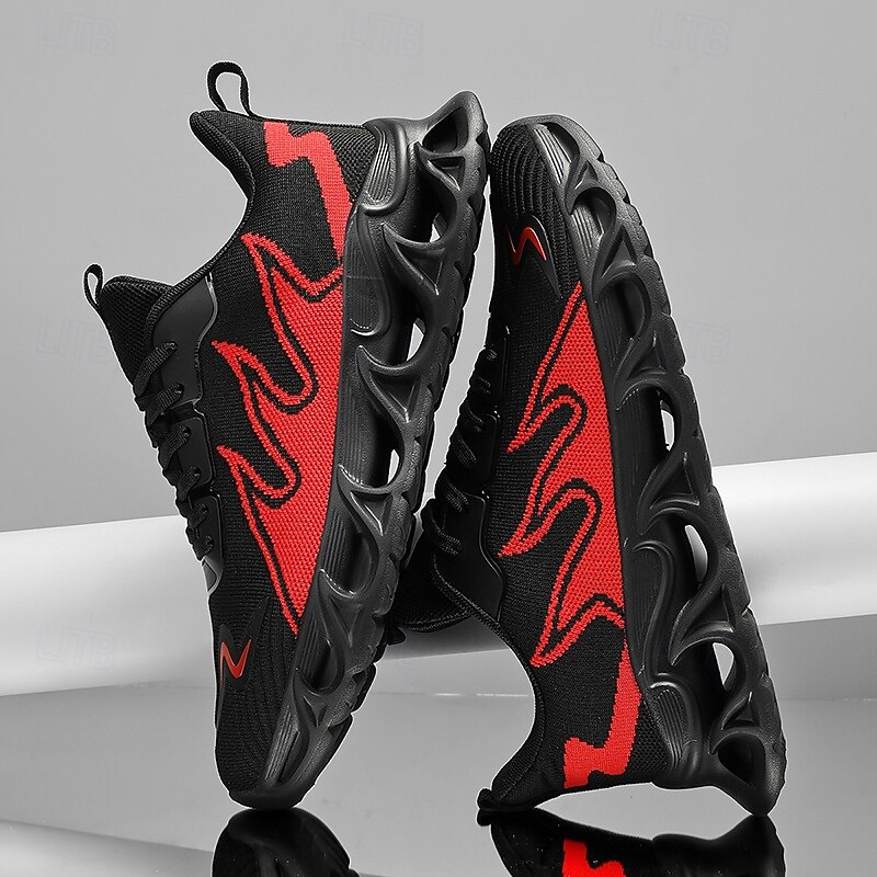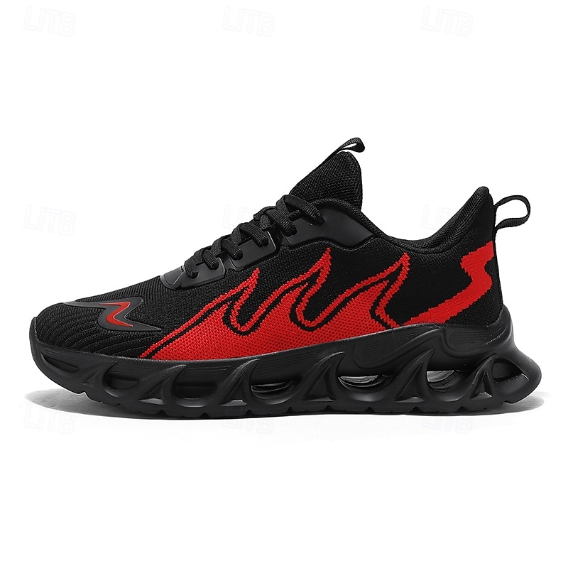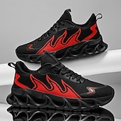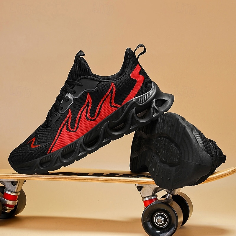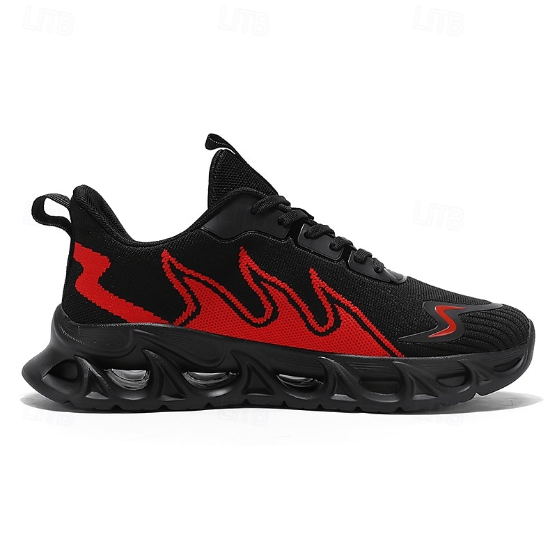 HOT ! Men's Sporty Sneakers, Bold Flame Design in Black and Red, Athletic Shoes for Running and Gym