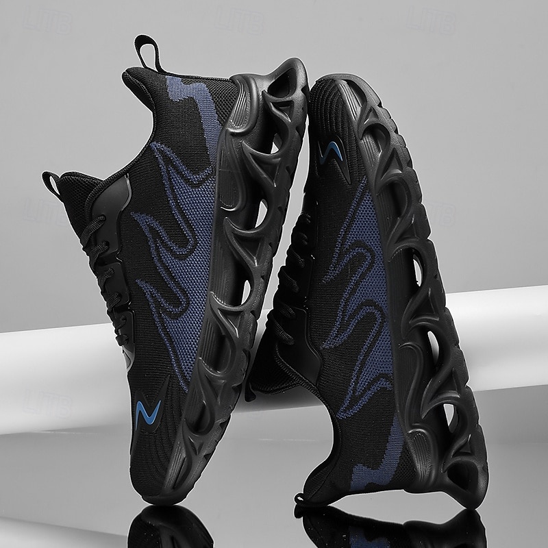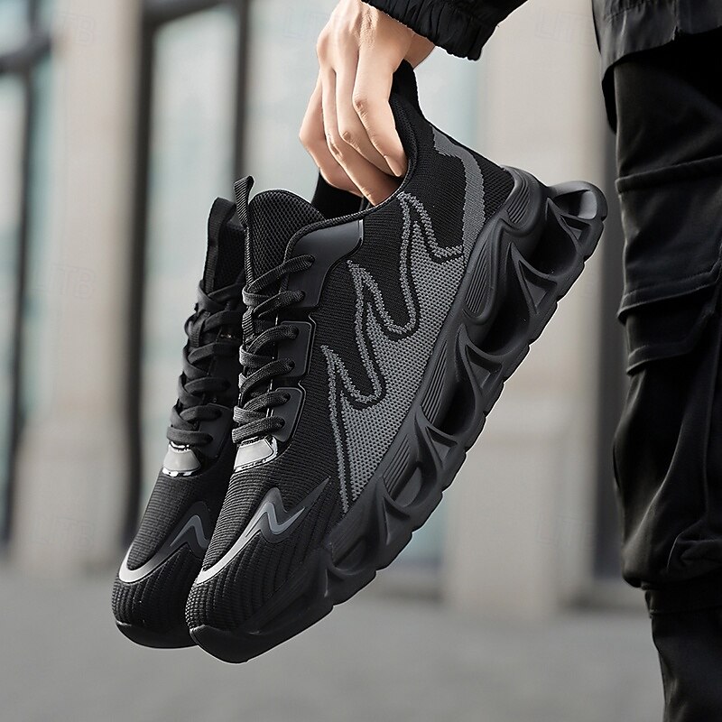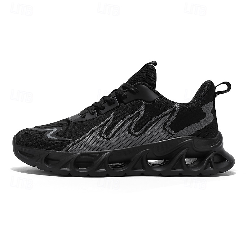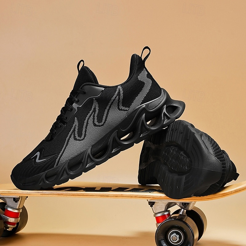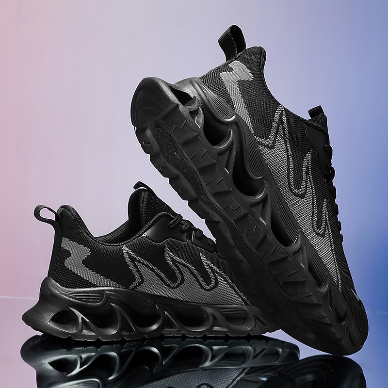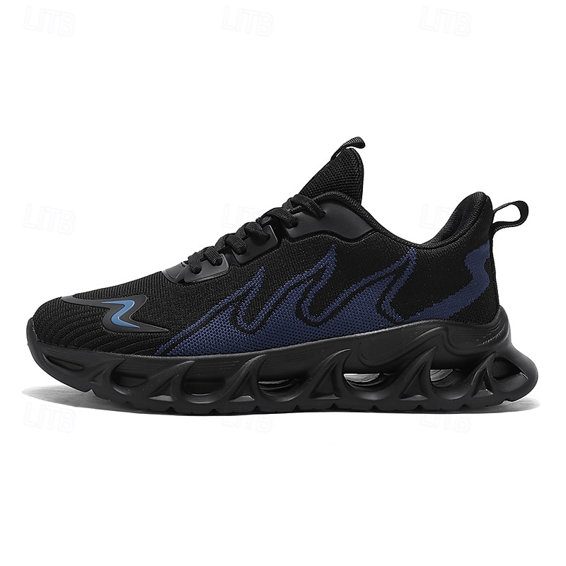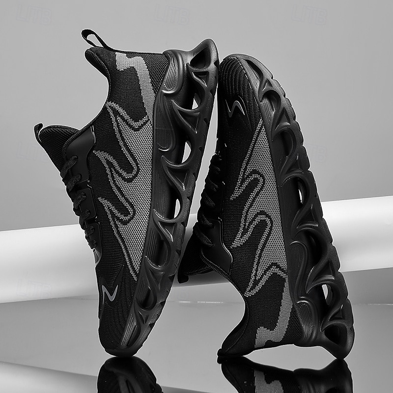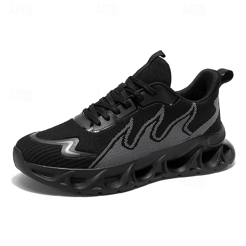 HOT ! Men's Sporty Sneakers, Bold Flame Design in Black and Red, Athletic Shoes for Running and Gym