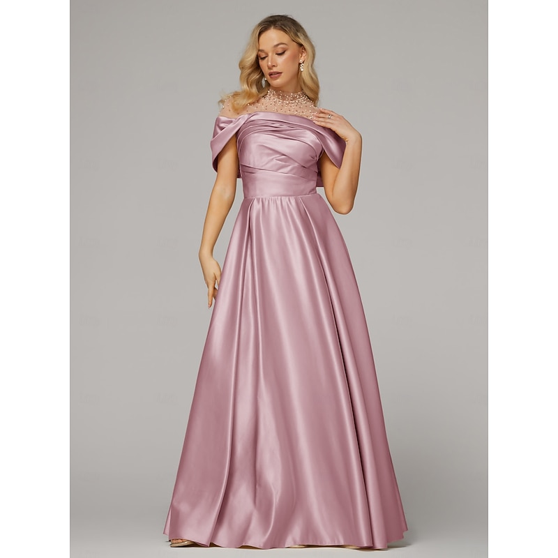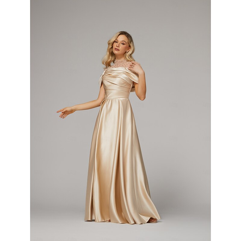 Crafted from luxurious satin, this A-line evening gown presents a smooth and silky texture that speaks to elegance and sophistication, ensuring you feel as stunning as you look.