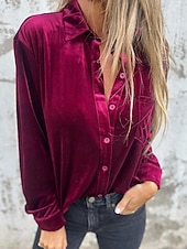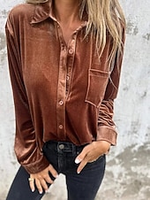 More information about Women's Shirt Blouse Plain Modern Long Sleeve Shirt Collar Regular Tops Holiday Going out Pocket Buttons Wine Army Green Light Brown Purple Summer Spring Fall