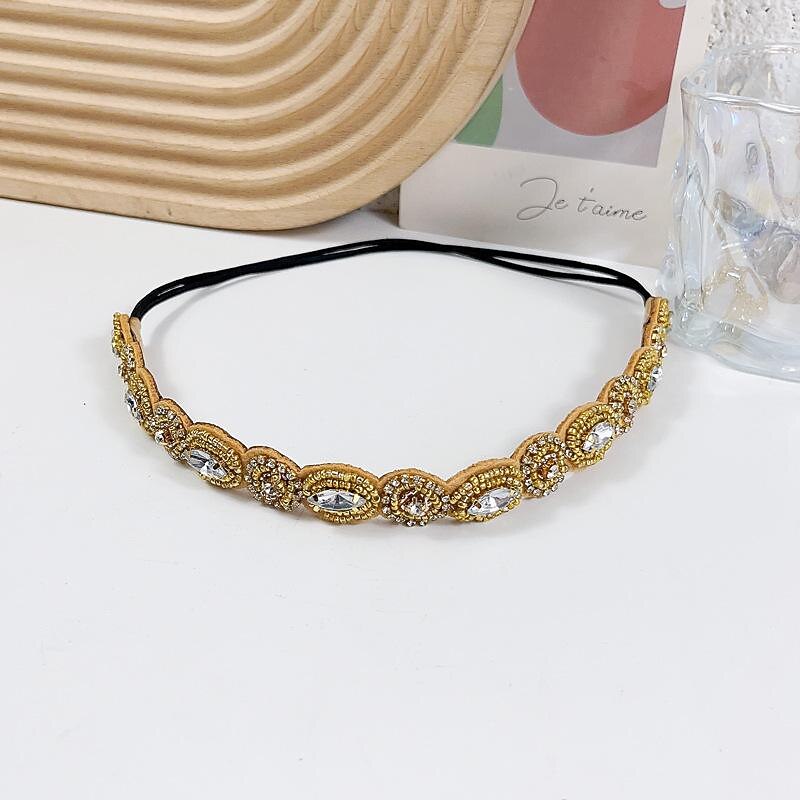 1 Pieces Rhinestone Beaded Elastic Headband Jewel Headbands Pearl Hair Band Crystal Beaded Women Head Wrap Lady Girls Hair Jewelry Accessories 7