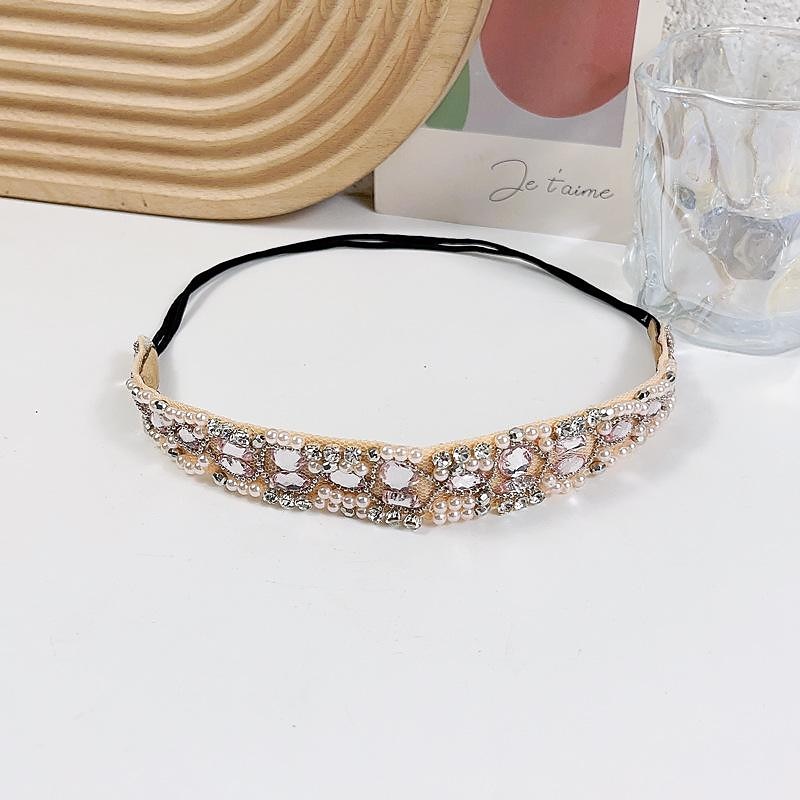 1 Pieces Rhinestone Beaded Elastic Headband Jewel Headbands Pearl Hair Band Crystal Beaded Women Head Wrap Lady Girls Hair Jewelry Accessories 1