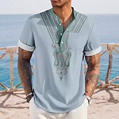 More information about Men's Boho Paisley Damask Shirt Henley Shirt Stand Collar Shirt Short Sleeve Ethnic Vacation Daily Summer Spring Mandarin Collar Band Collar Buttons Front One Pocket Linen Like Shirt Blue Khaki