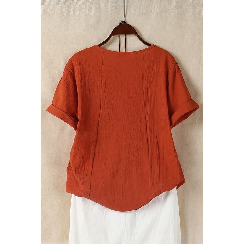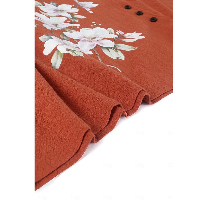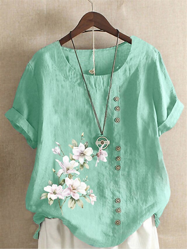 More information about Women's 100% Cotton Shirt Floral Streetwear Short Sleeve Crewneck Regular Tops Linen Vacation Daily Going out Buttons Print Navy Blue Blue Army Green Light Blue Coffee Summer Spring