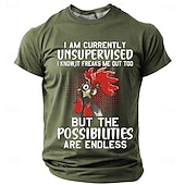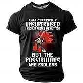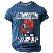 HOT ! Men's Funny Graphic T-Shirt: Unsupervised Rooster, Endless Possibilities Lifestyle Humor Short Sleeve Tee