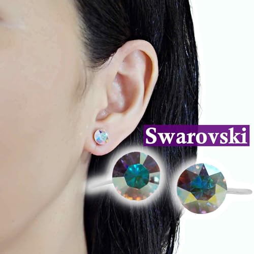 More information about Austrian Crystal Invisible Clip On Stud Earrings 6mm Women Fashion 8mm Light Blue Pink Red Green Black AB Purple Freshwater Pearl