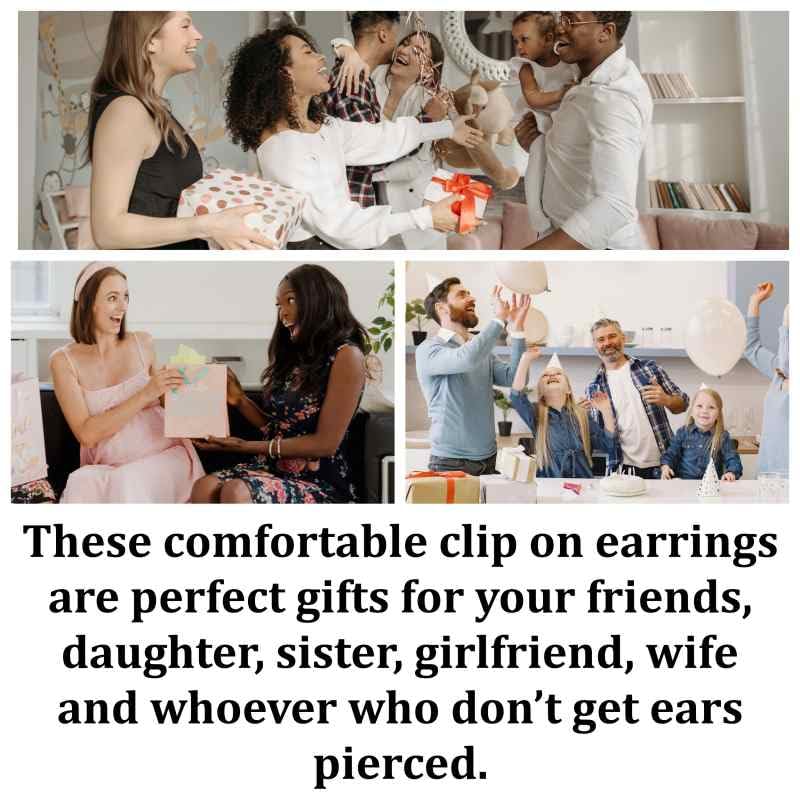 • Screw-Back Invisible Clip-On Earrings: These clip-on earrings feature a clear, invisible design that gives the look of real pierced earrings—without the need for a piercing. The soft, transparent clip is gentle on the ears and won’t cause discomfort, even after hours of wear. Plus, the screw-back feature allows you to adjust the fit to your earlobe’s thickness for extra comfort and security. Perfect for enjoying stylish earrings all day long!