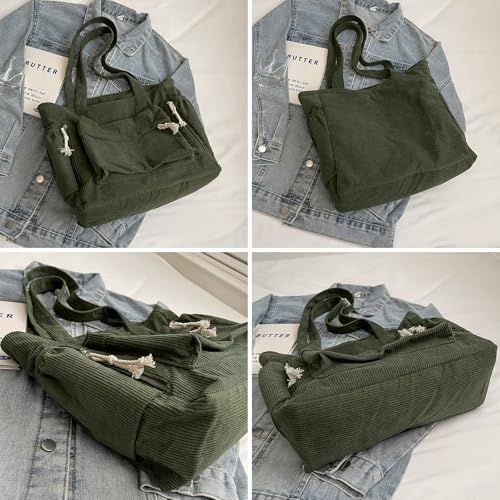 Eslcorri Women’s Hobo Handbag Corduroy Tote Bags Large Casual Shoulder Purse Slouchy Messenger Bag with Multi-pocket 5