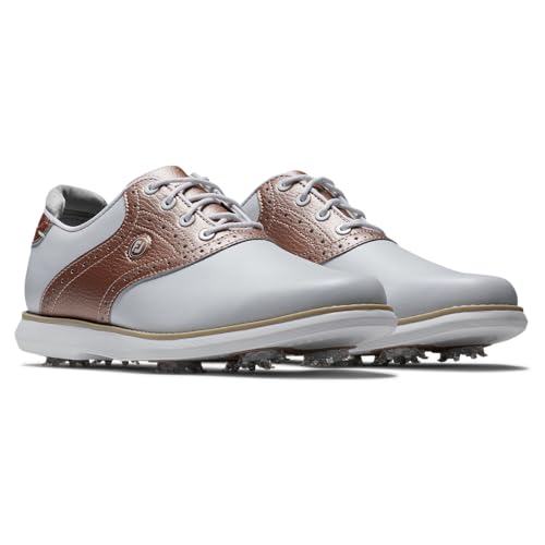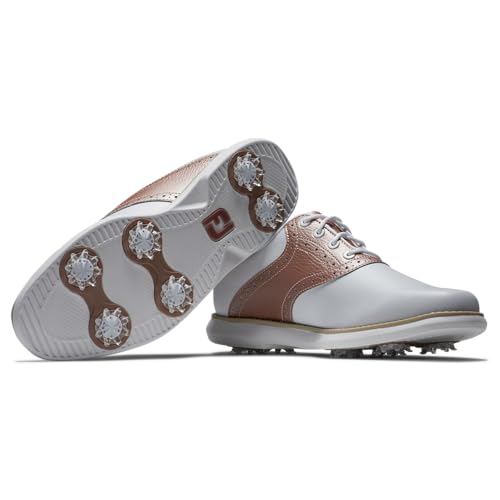 FootJoy Women's Traditions Previous Season Style Golf Shoe, White/Rose Gold, 9 4