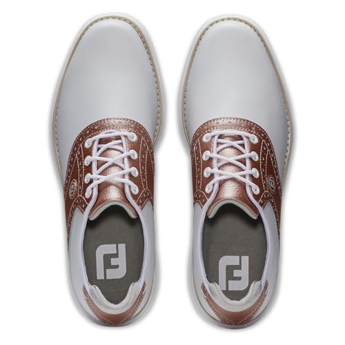 FootJoy Women's Traditions Previous Season Style Golf Shoe, White/Rose Gold, 9 7