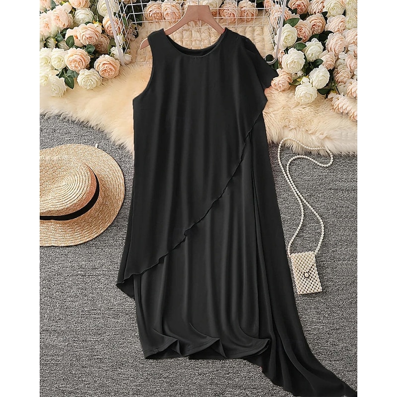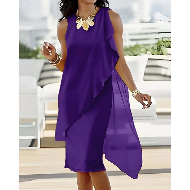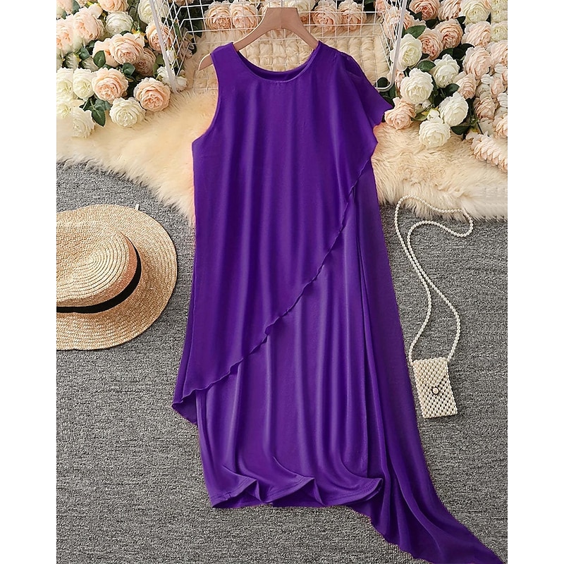 Highlights - Stay cool and stylish this summer in our chiffon dress - Sleeveless design perfect for warm weather - Ideal for daily wear or a day at the beach - Versatile chiffon dress can be dressed up or down - Unique asymmetrical design adds a modern touch - Flattering crew neckline - Mini dress length for a flirty look