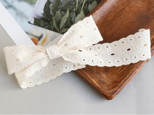 HOT ! Handmade Ivory Eyelet Lace Bow Headband for Baby Girls, Soft Stretchy Band Fits 6-12 Months, Boho Vintage-Inspired Baby Hair Accessory
