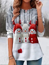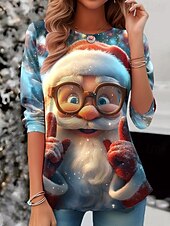 More information about Christmas Women's T Shirt Santa Claus Snowflake Vintage Stylish Classic Long Sleeve Crew Neck Round Neck Regular Tops Weekend Print Black Red Blue Light Grey Winter