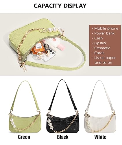 • Elegant lady style: This pearl charm purse is made with a pearl chain strap and PU leather crocodile pattern This Esimileeya purse for women is a trendy and stylish accessory that every American lady should have.The crocodile pattern adds a unique touch to this ladies underarm bag, making it stand out from the rest.
