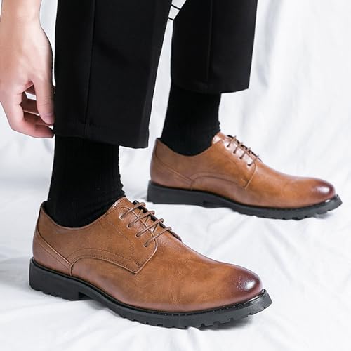 Men's Leather Oxfords Dress Shoes Fashion Round-Toe Lace up Low Top Derby Shoes Retro Classic Business Wedding Formal Shoes 6