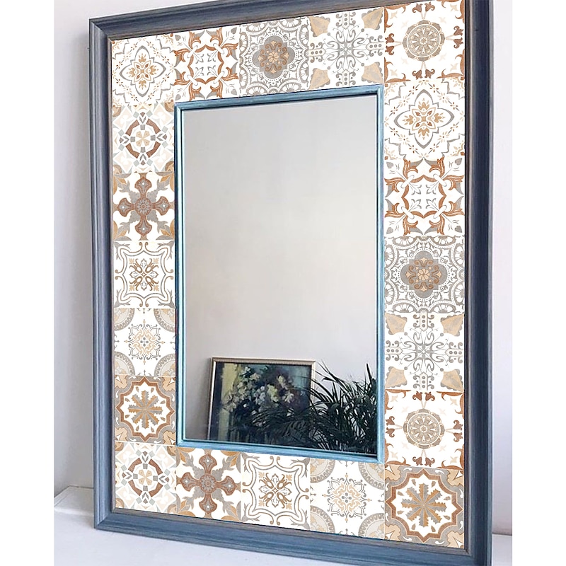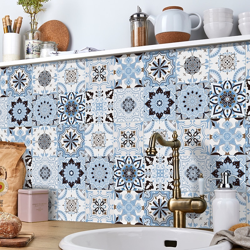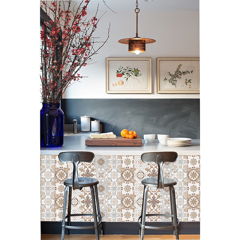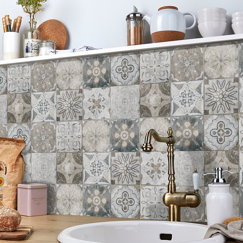 24/48pcs Creative Kitchen Bathroom Living Room Self-adhesive Wall Stickers Waterproof Retro Mosaic Tile Stickers 5