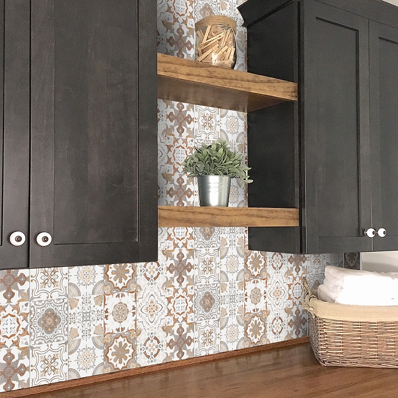 24/48pcs Creative Kitchen Bathroom Living Room Self-adhesive Wall Stickers Waterproof Retro Mosaic Tile Stickers 15