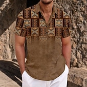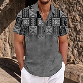 More information about Men's Ethnic Shirt Button Up Shirt Short Sleeve Casual Tribal Daily Holiday Summer Spring Turndown 3D Print Button-Down Blue Brown Gray