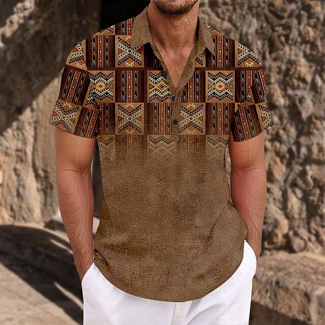 Men's Ethnic Shirt Button Up Shirt Short Sleeve Casual Tribal Daily Holiday Summer Spring Turndown 3D Print Button-Down Blue Brown Gray 7