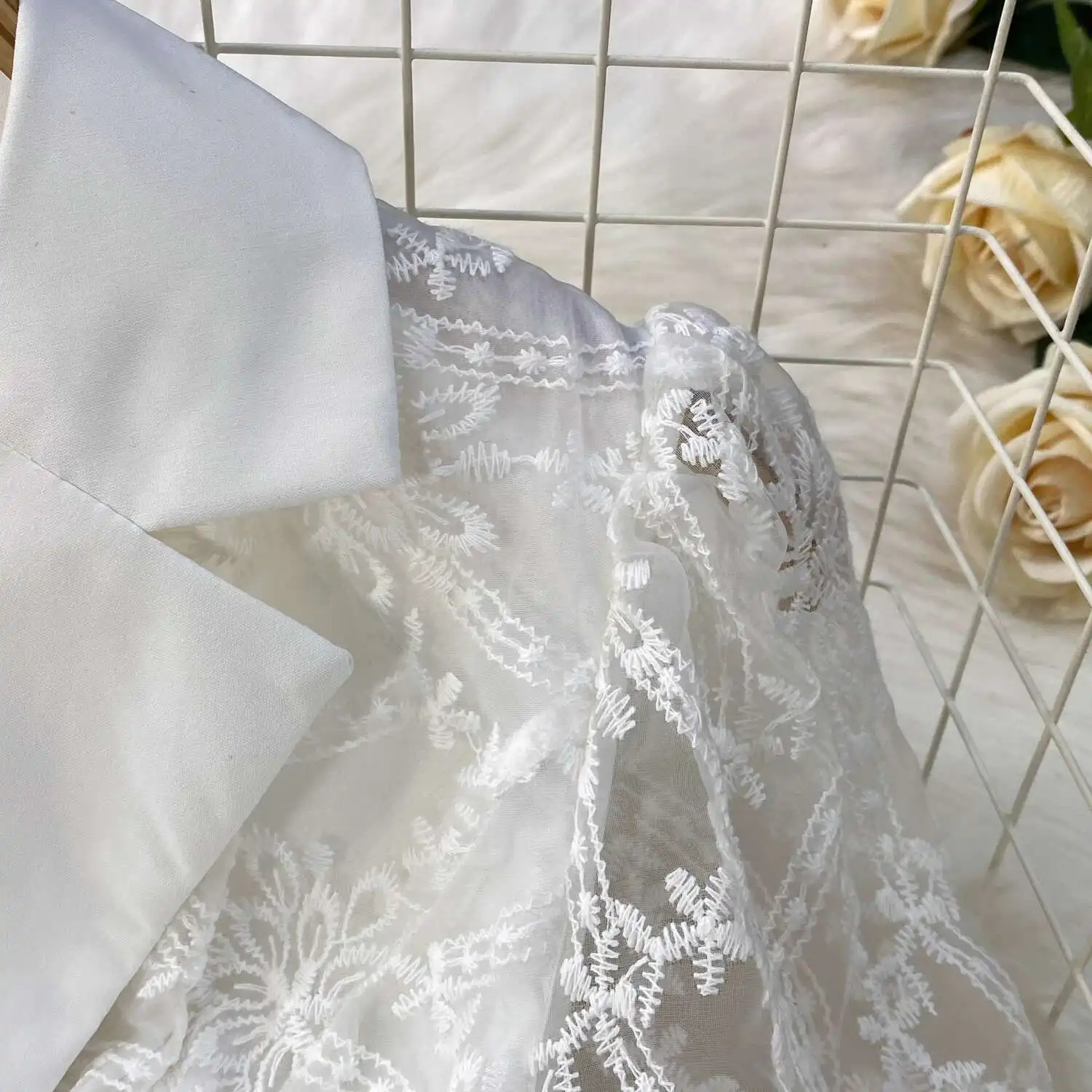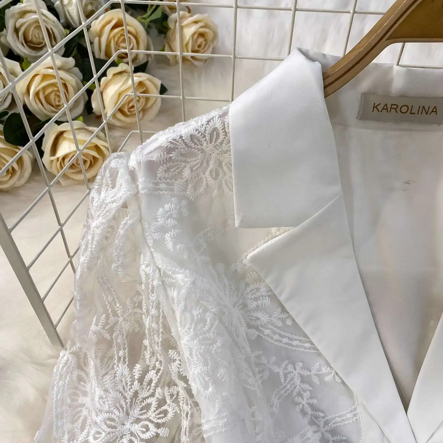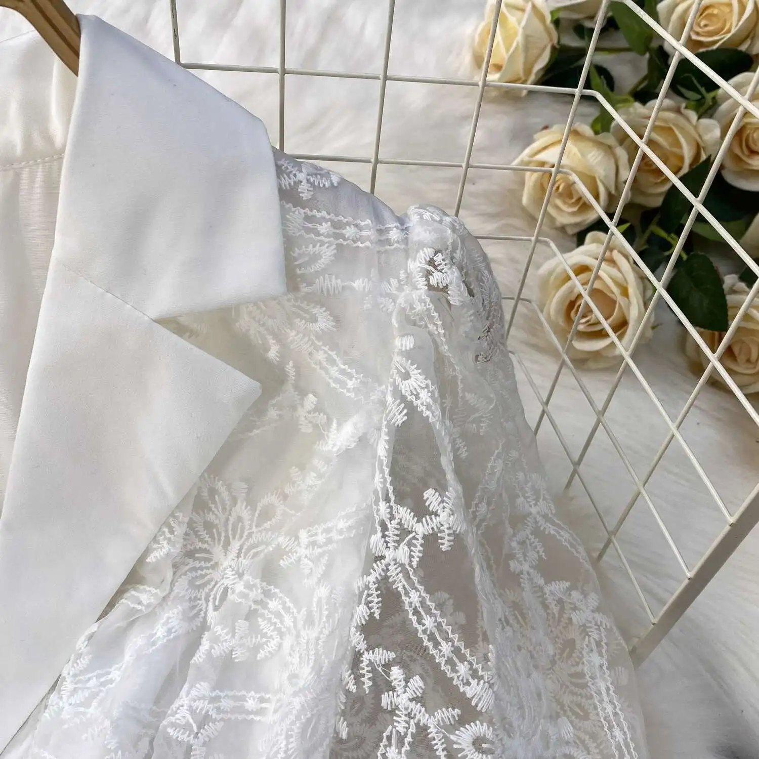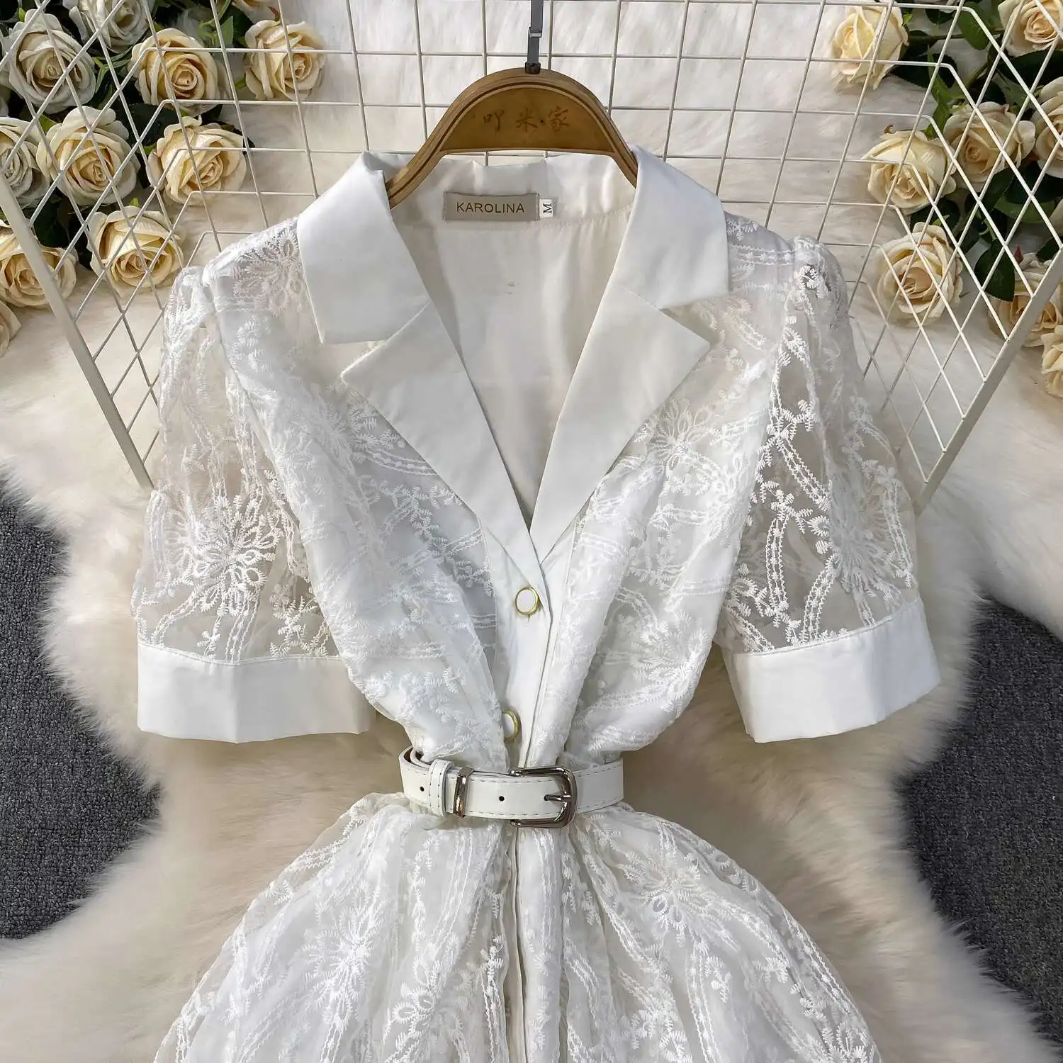 Designer Runway Luxury Formal Evening Dress Women Blazer Suit Collar Summer Short Sleeve Embroidery Lace Long Dresses Party Robe
