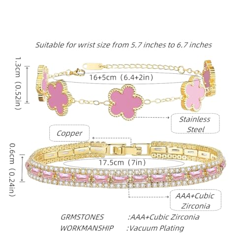 2Pcs Stackable Gold Bracelet Set for Women Cubic Zirconia Tennis Bracelet Adjustable 18K Gold Plated Flower Bracelet Set Trendy Gifts for Women 5