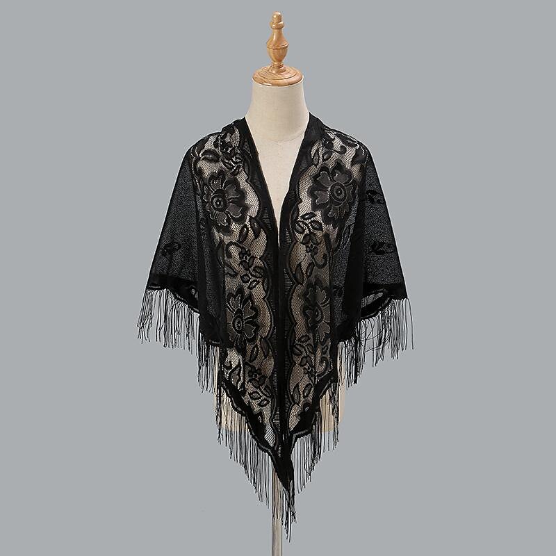 More information about Flower Embroidery Triangle Tassel Scarf Solid Color Hollow Shawl/Wedding Guest Wrap Outdoor Sunscreen Travel Head Wrap Hair Accessories dress to impress