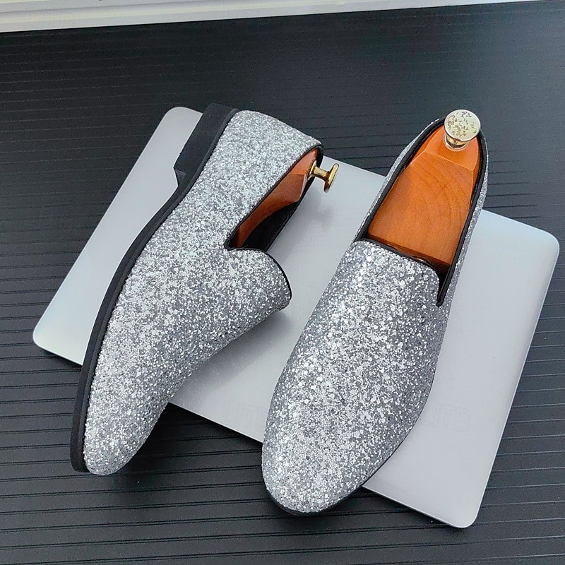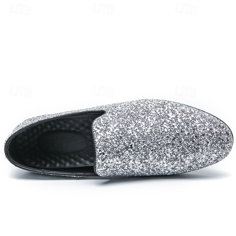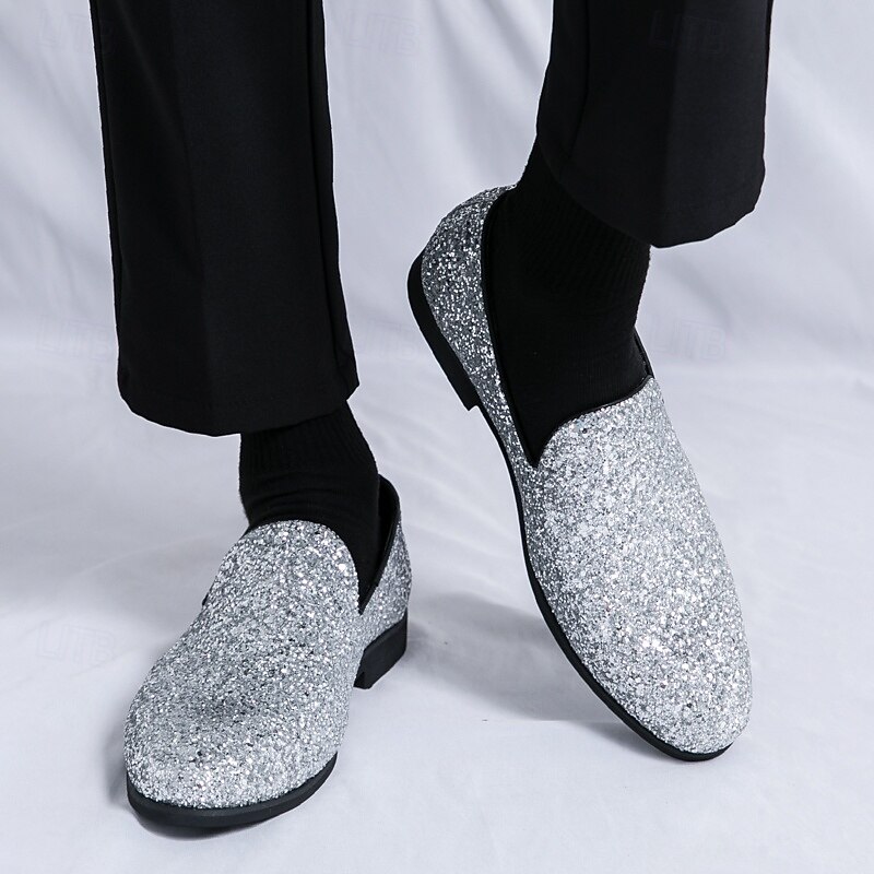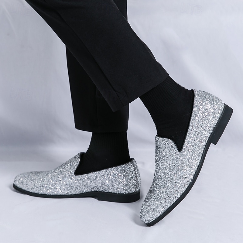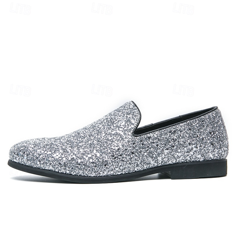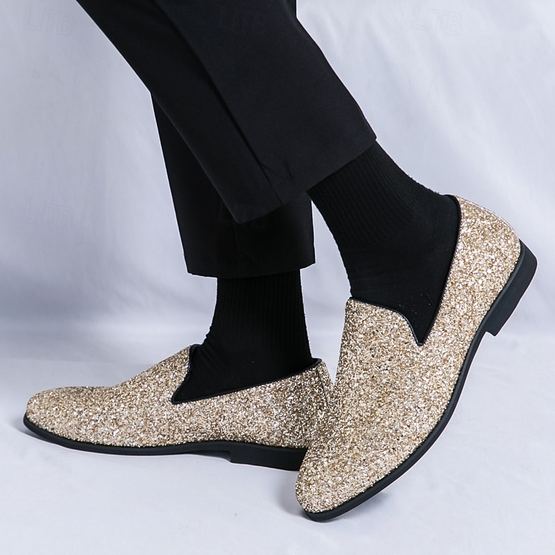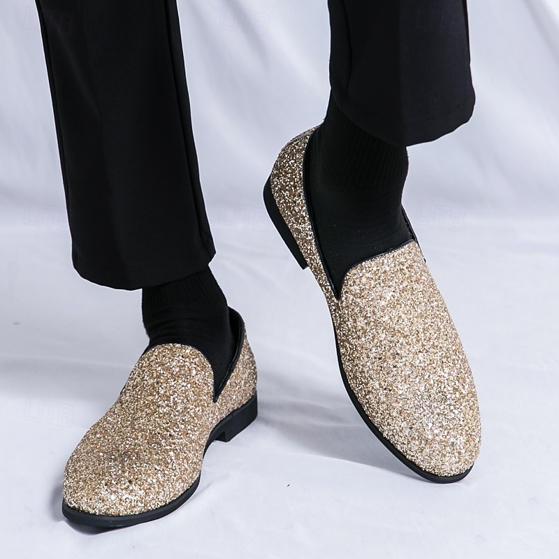 HOT ! Men's Prom Shoes - Gold Glitter Slip-On Loafers for Glamorous Evening Wear