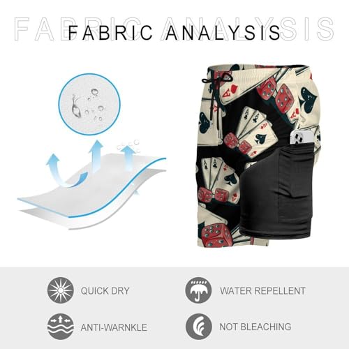 Lucky Gambling Casino Cards and Dice Mens Swim Trunks with Quick-Drying Lining Beach Shorts for Outdoor Sports 5