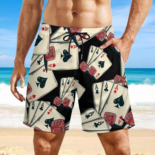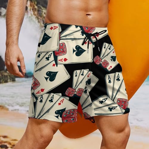 HOT ! Lucky Gambling Casino Cards and Dice Mens Swim Trunks with Quick-Drying Lining Beach Shorts for Outdoor Sports