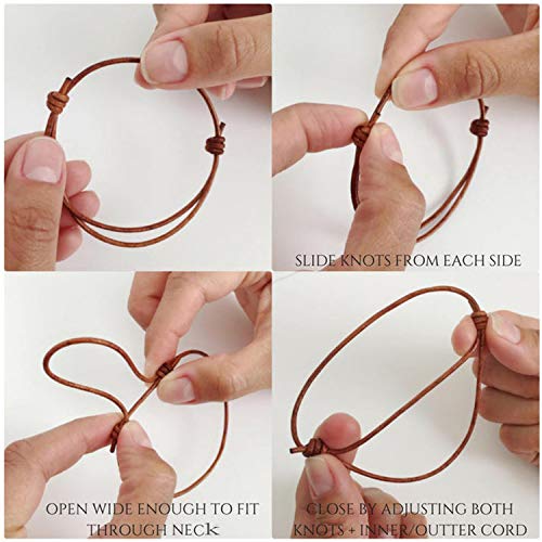 • Black Genuine Leather Necklace: 2 mm Greek Leather Cord Necklace with high quality, durable end caps, imported from Greece. This new style features Sturdy Double Knotted Adjustable design. We use only the finest Greek leather cord to custom create these Leather Necklaces-Chokers
