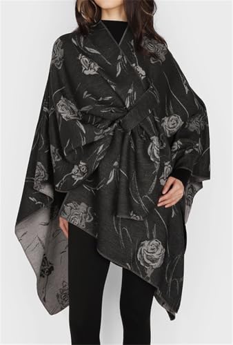 • Versatile Wear: Can be worn as a cape, shawl, or open-front coat. The loose fit suits all body types, ideal for layering over sweaters or dresses in fall/winter.