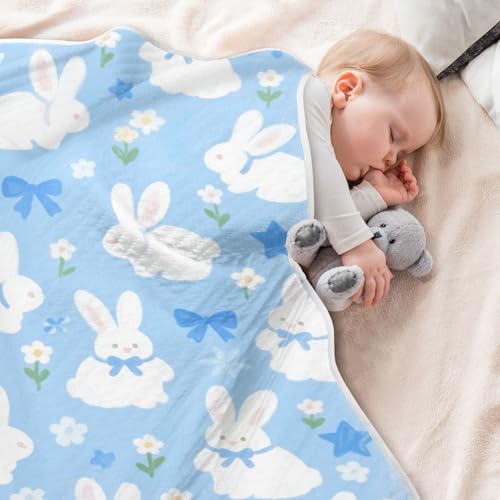 More information about Custom Cute Cartoon White Rabbit Blue Throw Blanket Breathable personalizadas para Name tag Blankets for Girls or Boys 30x40in cobija para