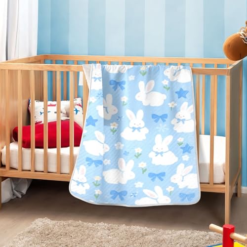 Custom Cute Cartoon White Rabbit Blue Throw Blanket Breathable personalizadas para Name tag Blankets for Girls or Boys 30x40in cobija para 2