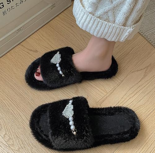HOT ! Women Plush Open Toe House Slippers Indoor Cotton Slippers with Pearl Soft Fuzzy Breathable Design for Home Lounging