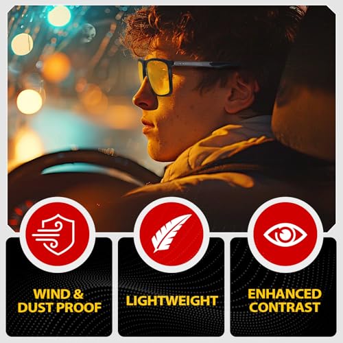• LIGHTWEIGHT COMFORT: The frame of these night vision glasses is lightweight and constructed from sturdy material that holds its shape. Quality one-piece nose pads prevent slipping. You'll barely notice you're wearing them while driving