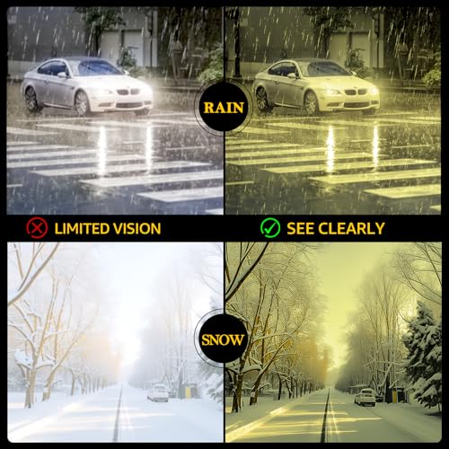 • CLASSIC SQUARE FRAME DESIGN: These night vision glasses are designed with retro square elements and are always favored by trendsetters. It is an excellent choice for you at Night Rainy Foggy Cloudy Dusk Snowy and other low-light conditions while driving