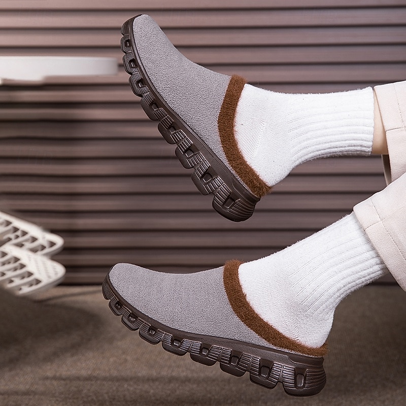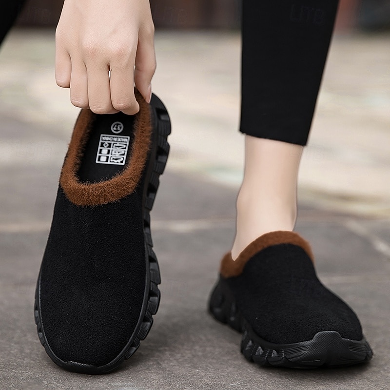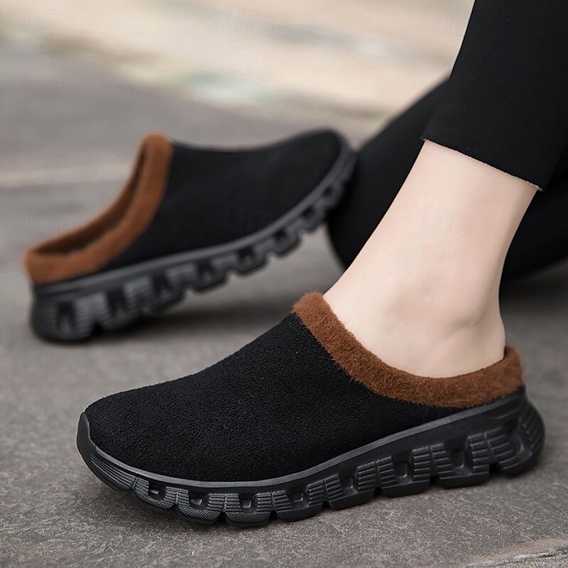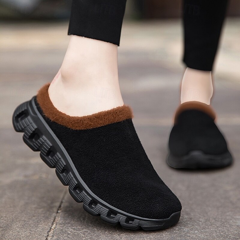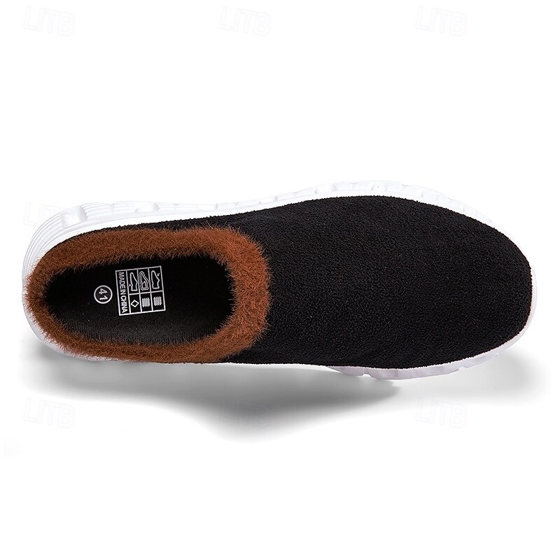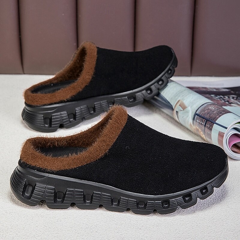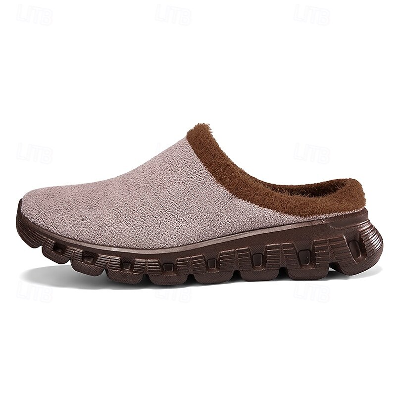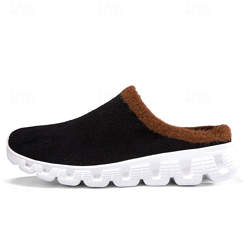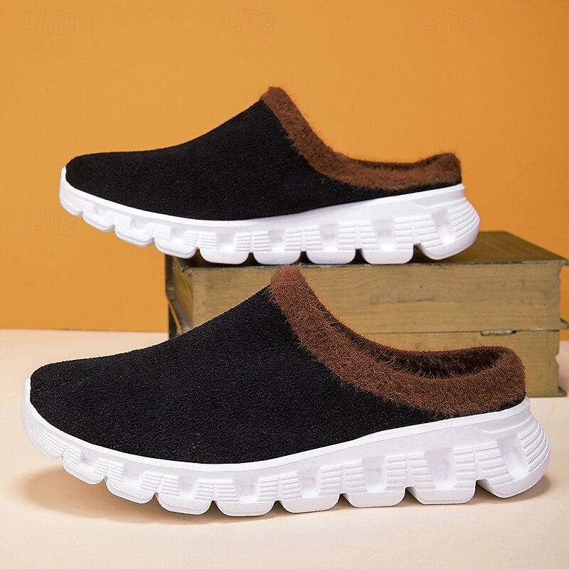 Highlights [Fabric & Construction] : Crafted with a luxurious suede upper, these men's clogs deliver both comfort and style. The inner lining is made from PU, offering a soft and warm fleece-like feel that is perfect for chilly weather. [Design & Fit] : Featuring a convenient slip-on loafer design, these clogs highlight a round toe shape that provides ample room for your toes. The shoe's structure pairs a plush fleece lining with a supportive outsole, ensuring all-day comfort and a secure fit. [Key Design Elements] : The outsole is made from durable rubber, designed with an anti-slip tread pattern that provides enhanced grip and stability, making these clogs suitable for a variety of surfaces. The chunky sole adds to both the stylish appearance and the cushioning effect, ideal for everyday wear. [Occasions] : These versatile clogs are perfect for both indoor and outdoor activities. Whether you're enjoying a relaxed day at home or running errands in colder weather, their neutral color palette makes them easy to match with any casual outfit. [Size Range] : Available in a wide range of sizes from US6-6.5 to US12, ensuring a comfortable fit for various foot sizes. With options in classic colors like Black, Purple, Coffee, and Black and White, these clogs can cater to different style preferences.