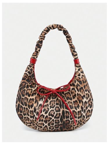 Verdusa Women's Cheetah Bow Tie Shoulder Handbags PU Leather Holiday Crescent Underarm Bags 1
