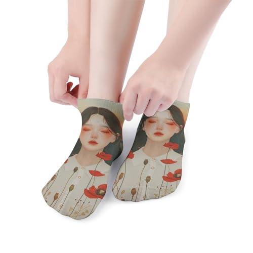 Long Hair Beauty Ankle Socks 5-Pack, Breathable Casual Athletic Socks for Women Men, One Size (6-11) 6