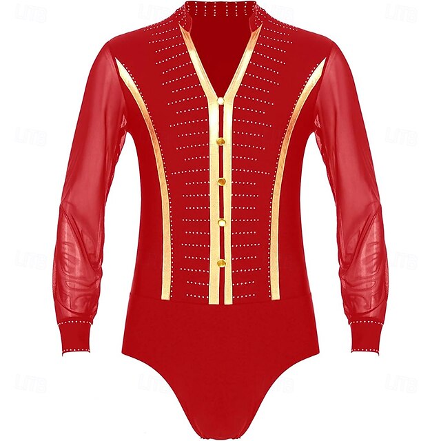 More information about Men's Shiny Rhinestone Deep V Neck Latin Tango Dance Shirt Leotard Ballroom Dance Costume