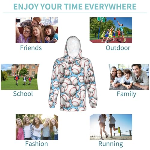 Baseball Ball Kid Hoodies Boys Sweatshirts Girls Pullover with Pocket