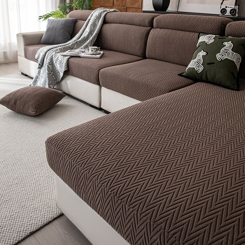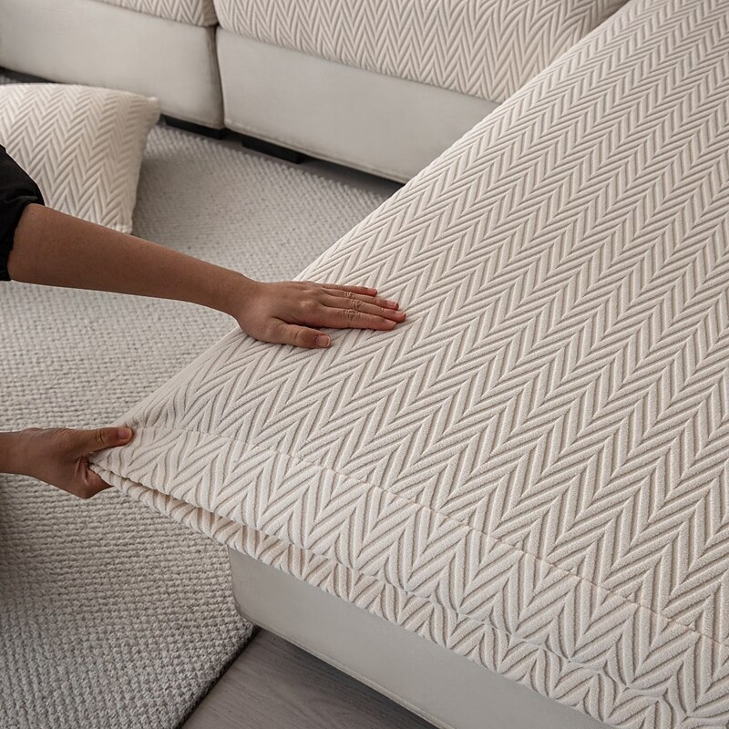 HOT ! 1 Pc Stretch Seat Cover Solid Simple Herringbone Lines Universal Jacquard Soft Polar Fleece Sofa Seat Cover-Easy to Clean & Durable Sofa Slipcover