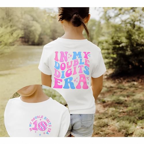 HOT ! IZYJOY in My Double Digits Era Shirts Girls 10th Birthday T-Shirts 10 Years Old Birthday Party Short Sleeve Summer Tee Tops