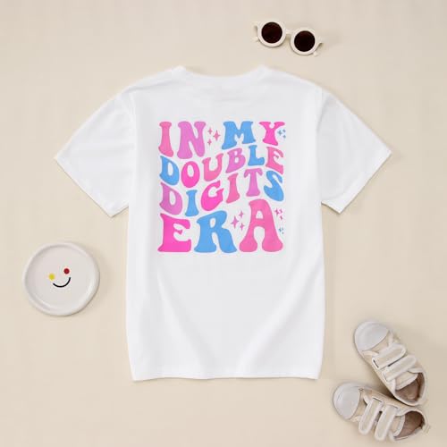 IZYJOY in My Double Digits Era Shirts Girls 10th Birthday T-Shirts 10 Years Old Birthday Party Short Sleeve Summer Tee Tops 2